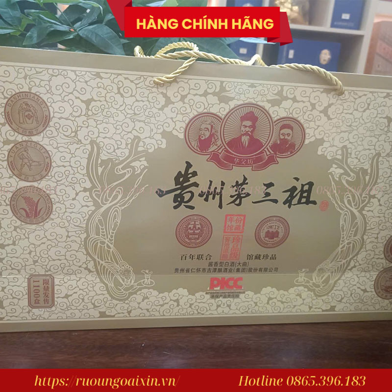Rượu Qúy Châu Mao Tam Tổ được đóng gói theo quy cách xách hộp, bao gồm 3 chai rượu với dung tích 500ml mỗi chai. Quy cách đóng gói này vừa tiện lợi cho việc mang theo và sử dụng, vừa đảm bảo tính thẩm mỹ và sang trọng.