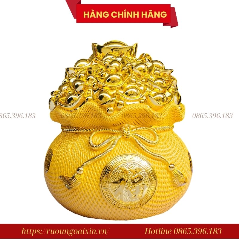 Set Rượu Túi Thần Tài màu vàng kim là biểu tượng của sự giàu có, phú quý và thịnh vượng. Màu vàng kim tượng trưng cho tiền bạc, của cải và quyền lực. Theo quan niệm phong thủy, màu vàng kim có khả năng thu hút năng lượng tài lộc và mang lại sự thành công trong kinh doanh.