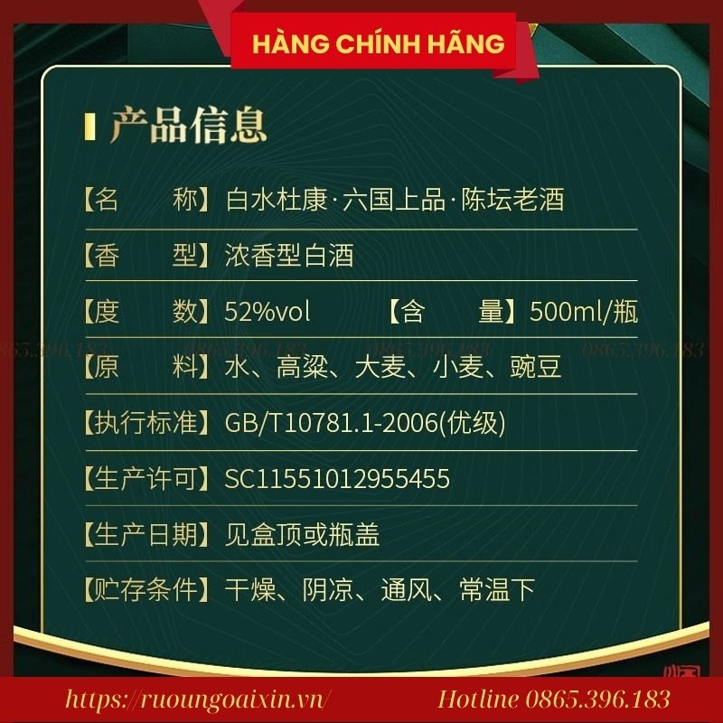 Xuất xứ và thông tin nhận diện của Rượu Dukang Đệ Nhất Cửu Vân Sơn là những yếu tố quan trọng giúp người tiêu dùng phân biệt sản phẩm chính hãng và hàng giả. Từ việc sản xuất tại Trung Quốc đến thiết kế bao bì độc đáo, mọi chi tiết đều được chú trọng, tạo nên một sản phẩm chất lượng và đáng tin cậy.