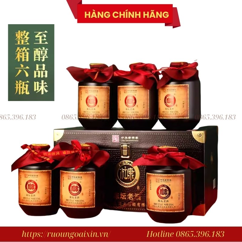 Thùng da cao cấp 6 vò, dung tích mỗi vò 500ml Nồng độ rượu 52%vol